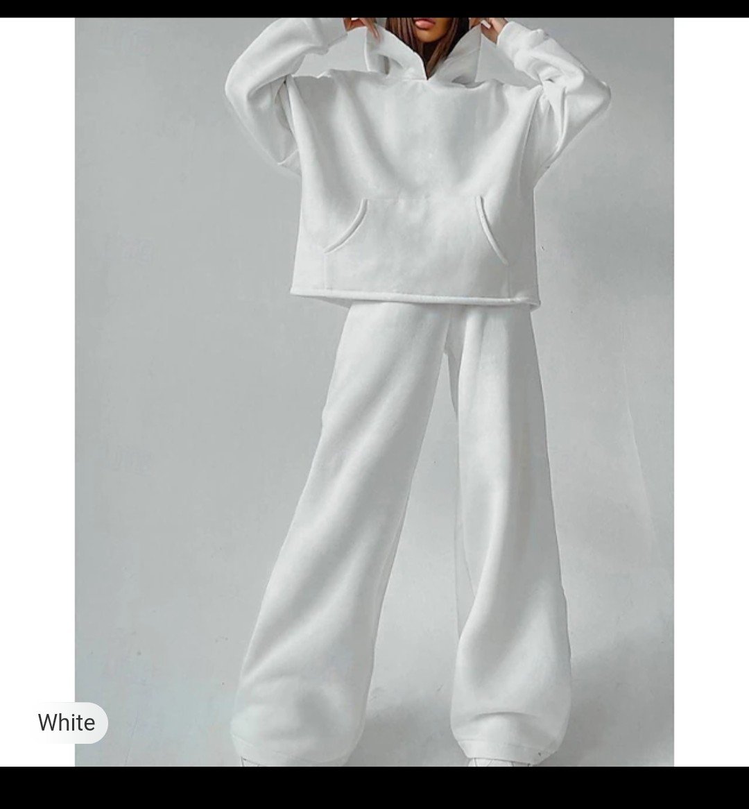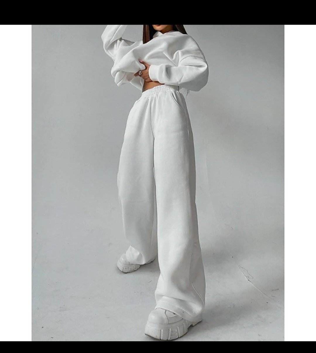Good quality kuchh bolo Women’s Tracksuit Sweatpants Wide Leg Pants Lace Pocket Solid Colored Clothing Suit Fall Black White Gym Athleisure Running Thermal Warm Windproof Long